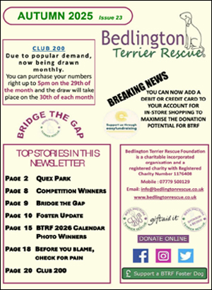 © 2018 Bedlington Terrier Rescue Foundation is a charitable incorporated organisation and a registered charity with Registered Charity Number 1176408 whose registered address is at Glyn Coch, Alltwalis, Carmarthen SA32 7EA | Site by AIM Ltd | Login
