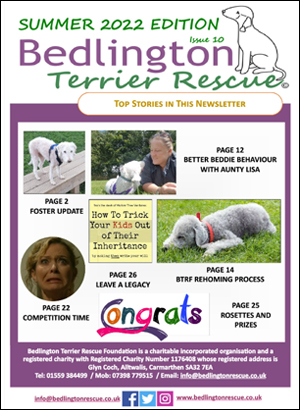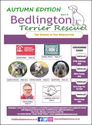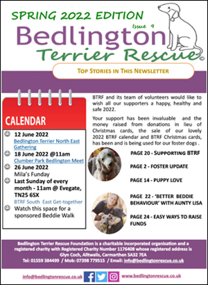 © 2018 Bedlington Terrier Rescue Foundation is a charitable incorporated organisation and a registered charity with Registered Charity Number 1176408 whose registered address is at Glyn Coch, Alltwalis, Carmarthen SA32 7EA | Site by AIM Ltd | Login