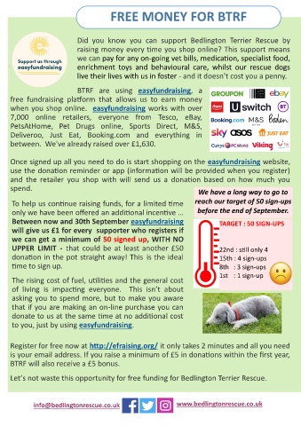 Between now and 30th September easyfundraising TARGET : 50 SIGN-UPS