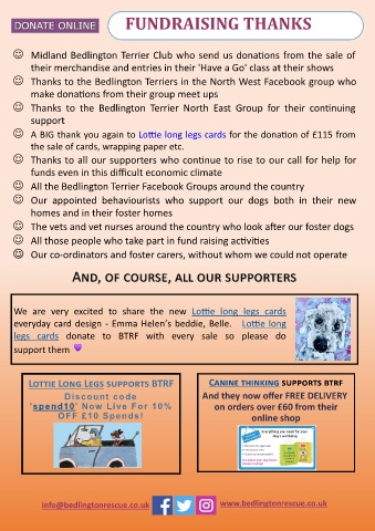 ☺ Midland Bedlington Terrier Club who send us donations from the sale of