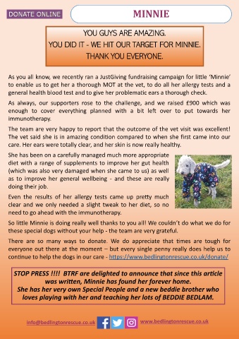 As you all know, we recently ran a JustGiving fundraising campaign for little ‘Minnie’
