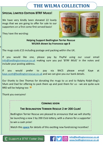 info@bedlingtonrescue.co.uk making sure you put ‘BTRF MUG’ in the notes and