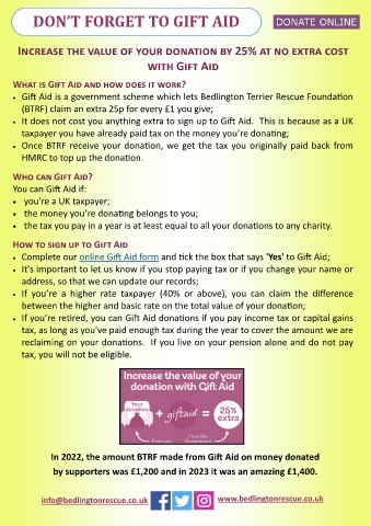 • Gift Aid is a government scheme which lets Bedlington Terrier Rescue Foundation