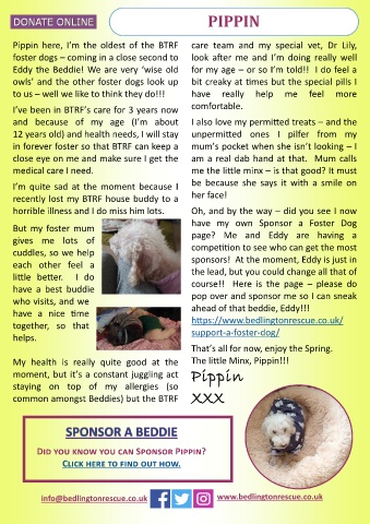 Pippin here, I’m the oldest of the BTRF care team and my special vet, Dr Lily,