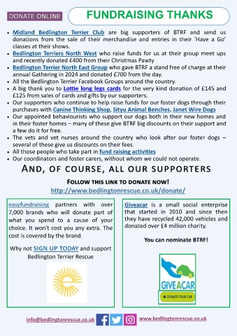 • Midland Bedlington Terrier Club are big supporters of BTRF and send us