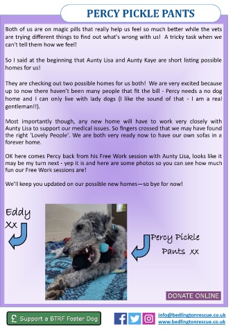 up to now there haven't been many people that fit the bill - Percy needs a no dog