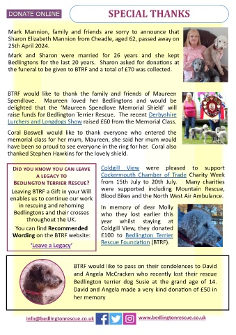 Bedlingtons for the last 20 years. Sharon asked for donations at