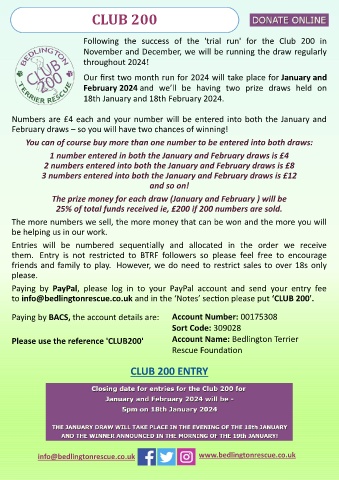 to info@bedlingtonrescue.co.uk and in the ‘Notes’ section please put ‘CLUB 200'.