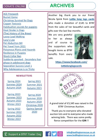 Winter 2023 Christmas 2020 A grand total of £3,345 was raised in the