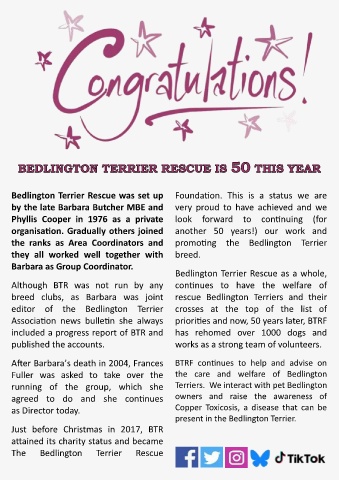 Bedlington Terrier Rescue was set up Foundation. This is a status we are
