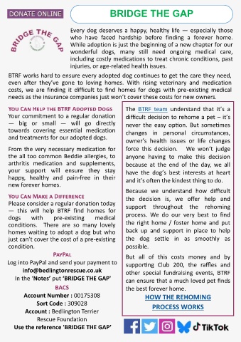 In the ‘Notes’ put ‘BRIDGE THE GAP' can ensure that a much loved pet finds